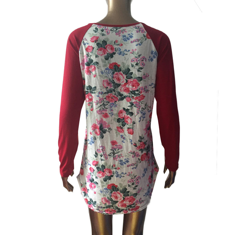 Women Causal T-Shirts Long Sleeve Floral Striped Splicing O-Neck Loose T-Shirt Tee Shirts femme camisetas y tops IMY66