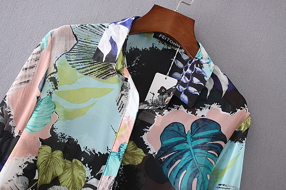 Women Chiffon Blouse Sexy Floral Flower Printing Blouses Long Sleeve Turn-down Collar Loose Shirts Tops blusas femininas IMY66