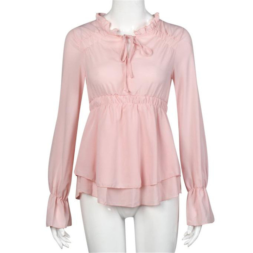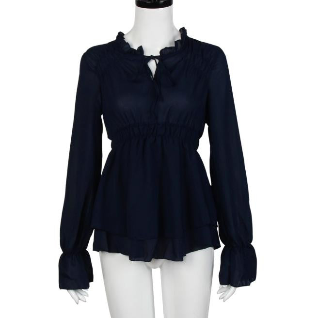 Women Chiffon Blouse Sexy V Neck Loose Tops Flare Sleeve Long Sleeve Shirts Casual Blouse Shirt Blusas Femininos IMY66