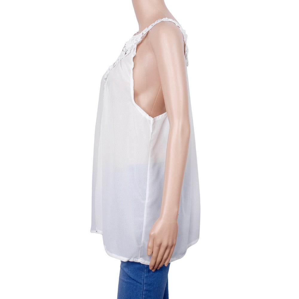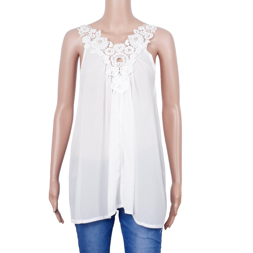 Women Chiffon Blouse White Vest Stitching Lace Sling Shirt Clothes Casual Tops Tank blusa de renda feminino IMY66