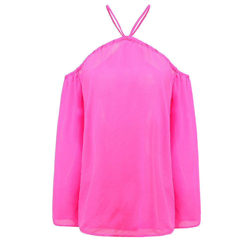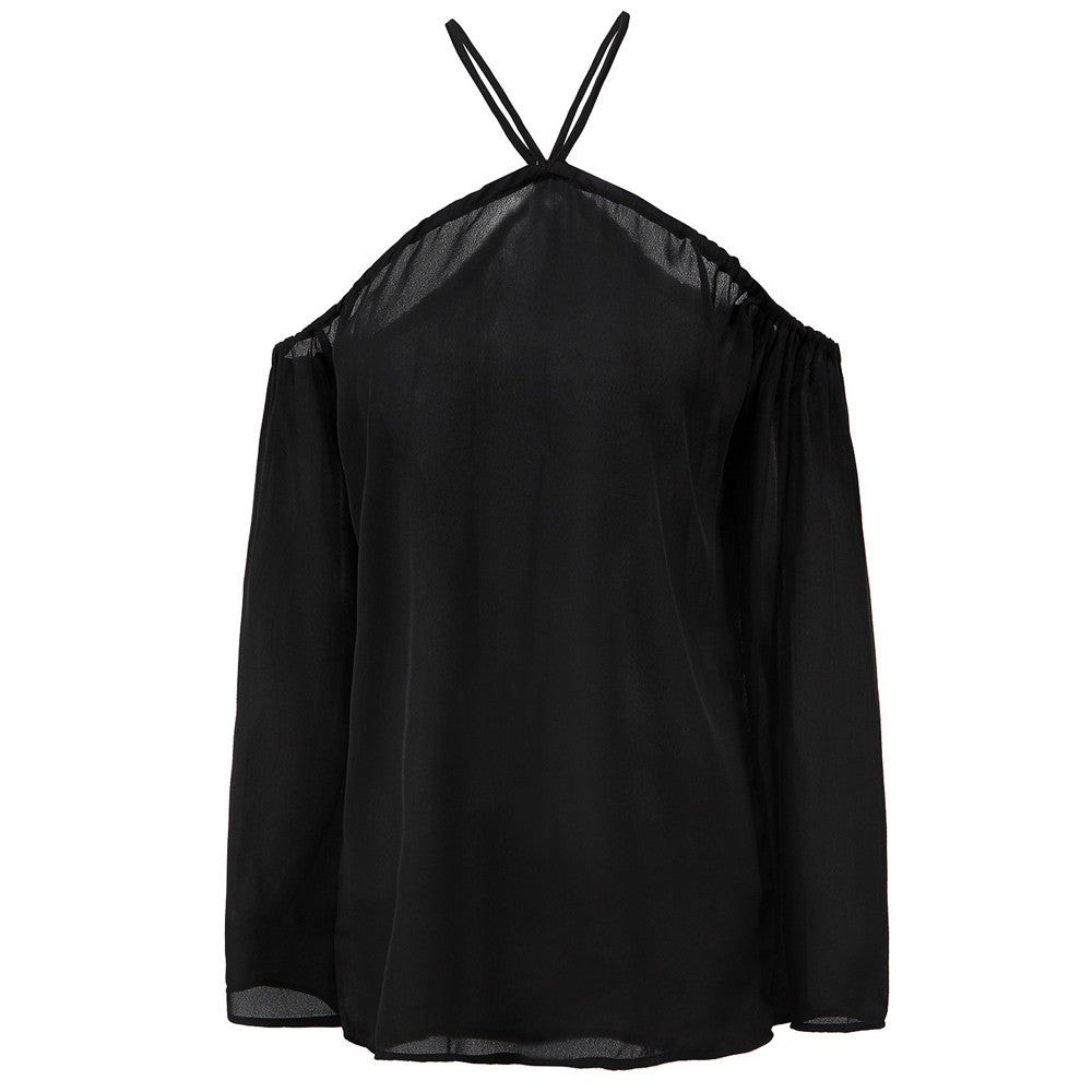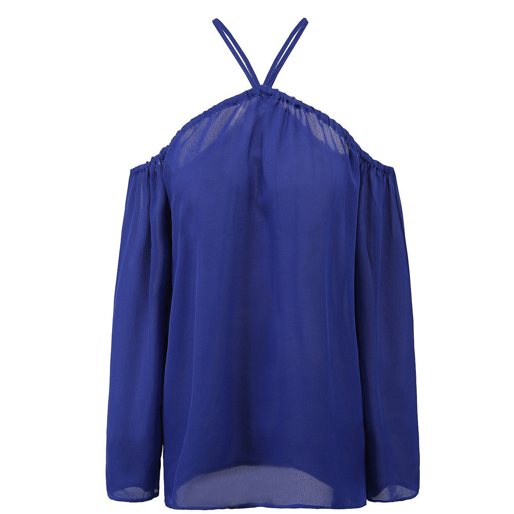 Women Chiffon Blouses Sexy Off Shoulder Halterneck Chiffon Blouse Casual Long Sleeve Tops Shirt blusa feminina IMY66