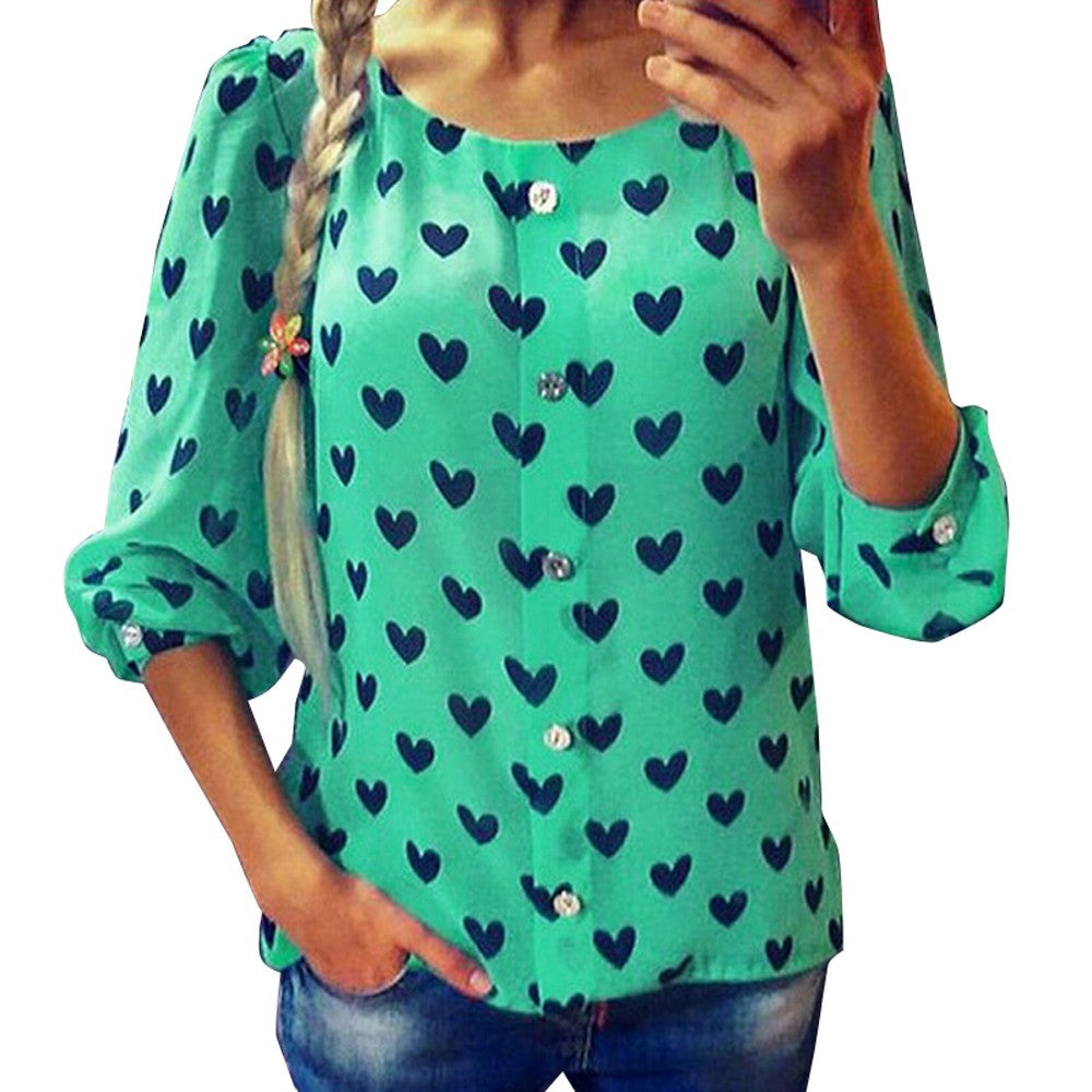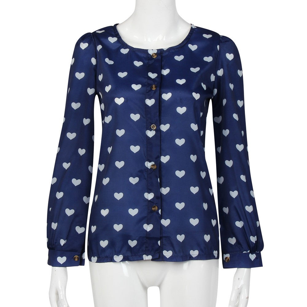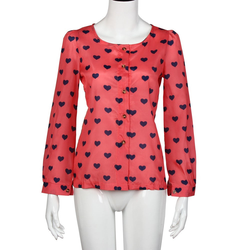 Women Chiffon Blouses Tops Ladies Casual Long Sleeve Shirt Heart Love Print Blouse Loose Shirts blusas femininas IMY66