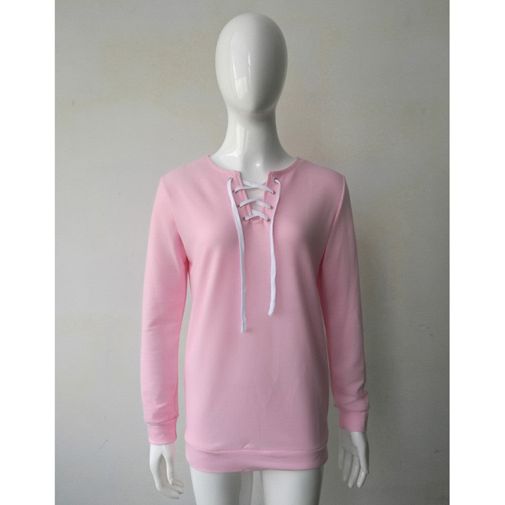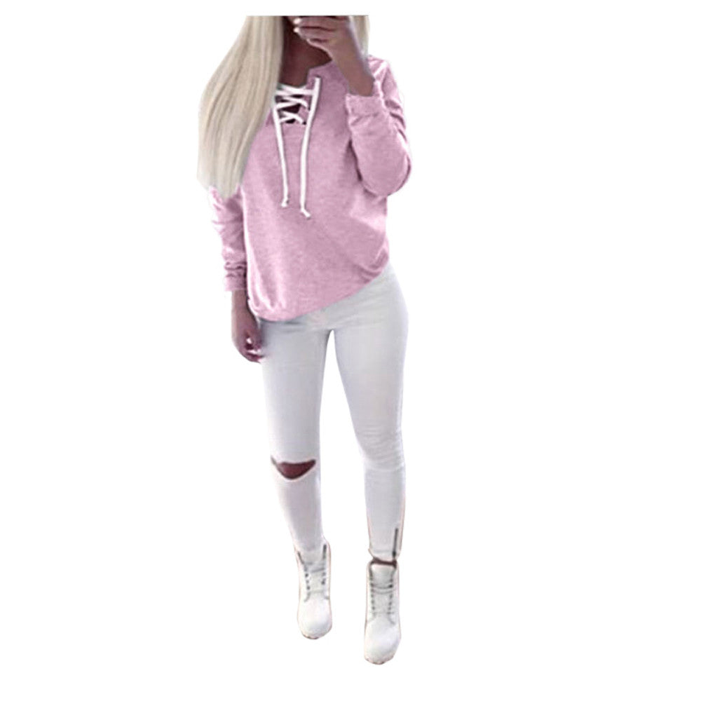 Women Clothing Lace-up Tee Shirts femme Long Sleeve Pullover Tops Casual Bandage T-shirt camisetas y tops IMY66