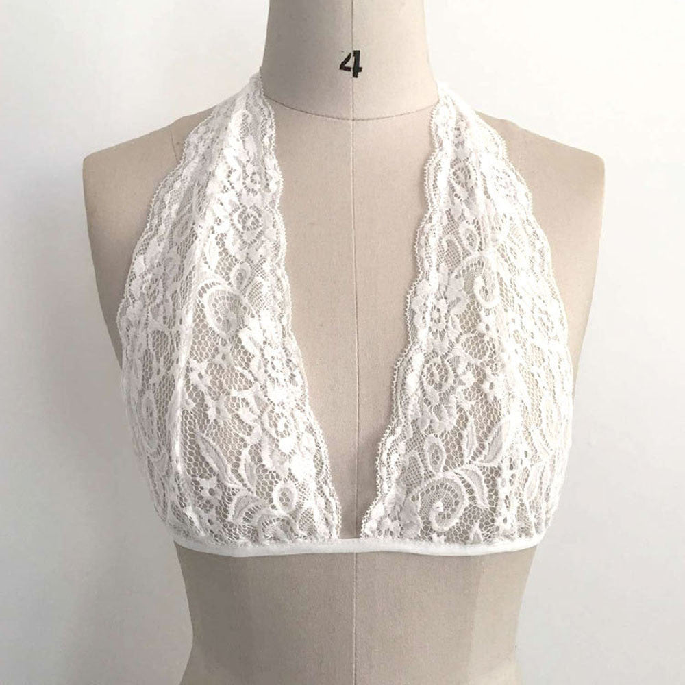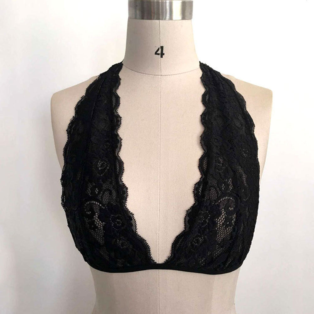 Women Crop Top Sexy Hollow Translucent Underwear Sheer Lace Strap Lingerie Bra Tank Tops Regata feminina IMY66