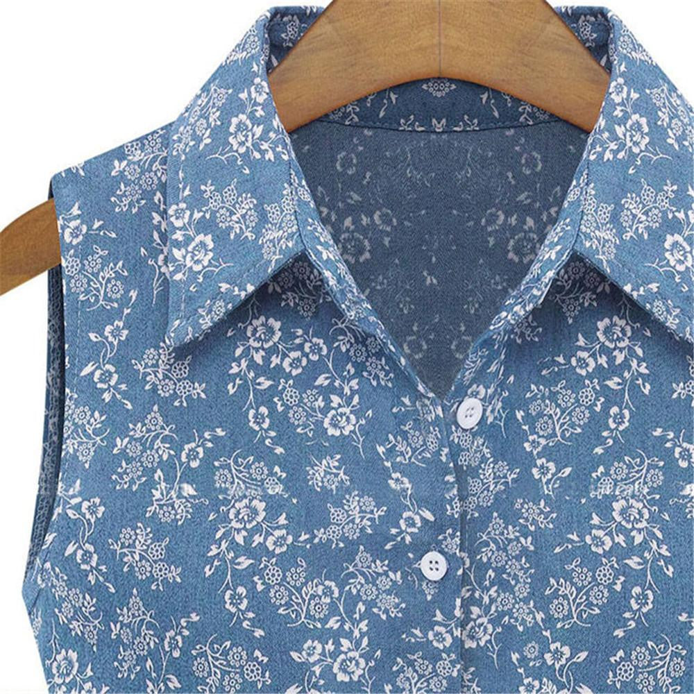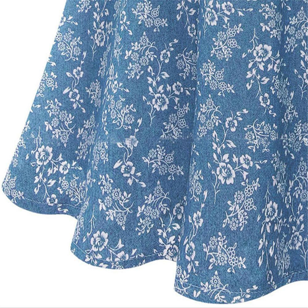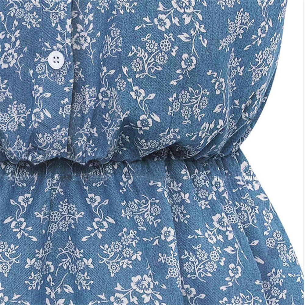 Women Denim Dress Lapel Sleeveless Casual Slim Flower Printed Denim Dress robe vestido de festa IMY66
