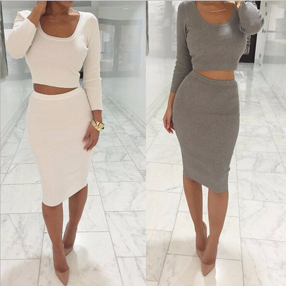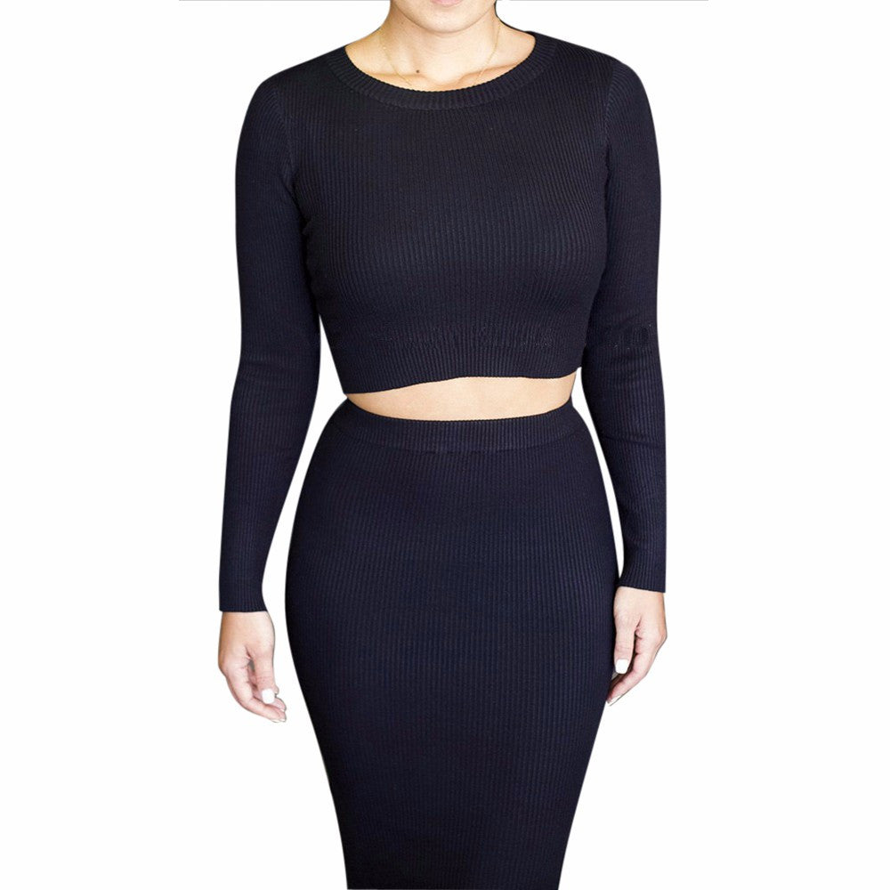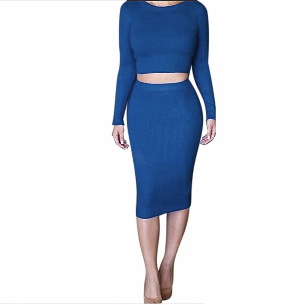 Women Dress 2 Pieces Set Long Sleeve Midi Pencil Bodycon Dress Casual Elegant Slim Bandage Dresses vestidos IMY66