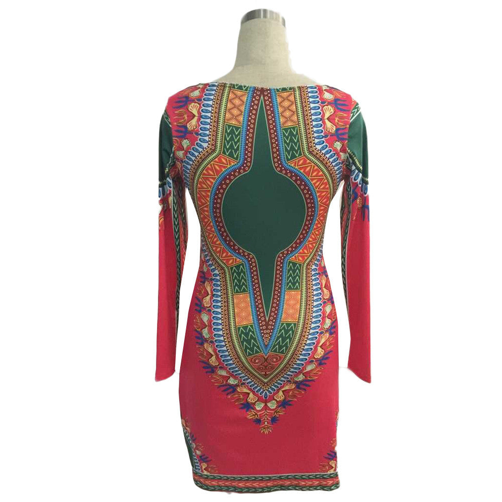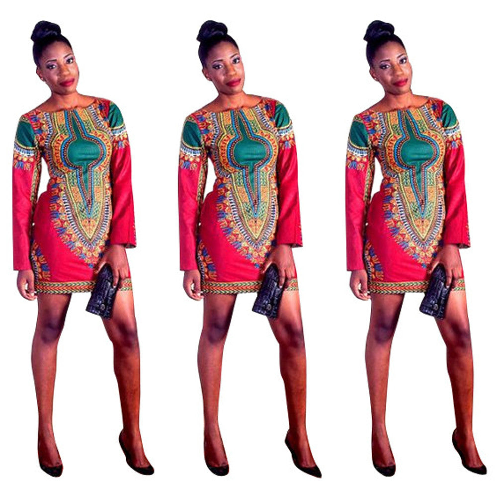 Women Dress African Print Dress Casual Long Sleeve Straight Print Kaftan Sexy Dress vestidos femininos IMY66