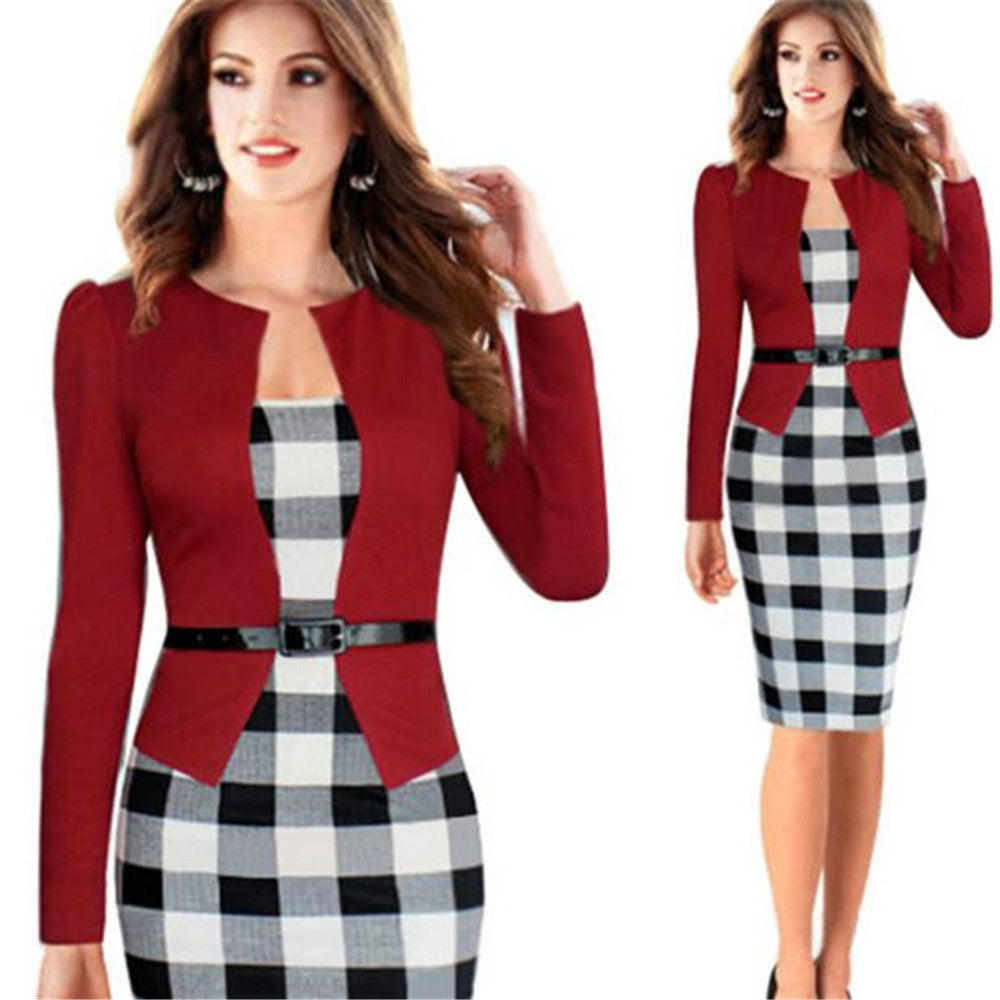 Women Dress Elegant Ladies Knee Length Long Sleeve Bodycon Formal Office Dress Vestidos Femininos IMY66