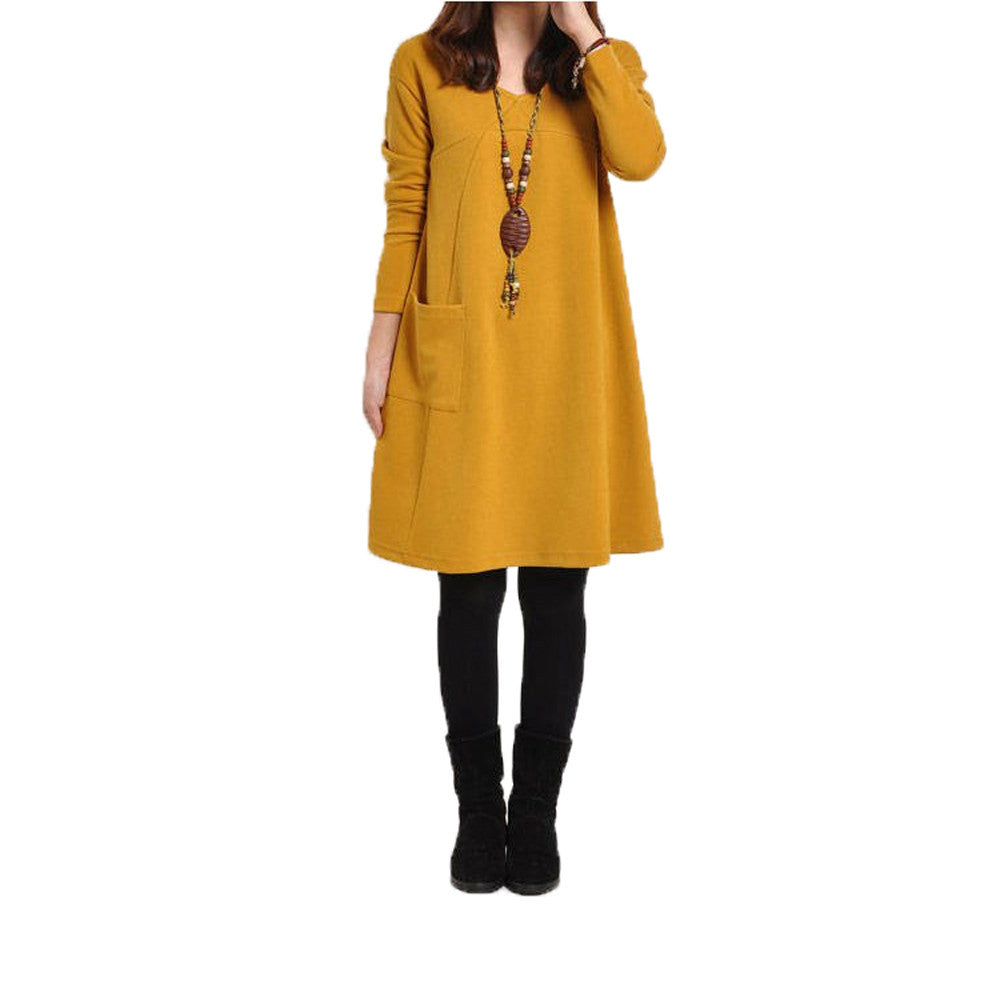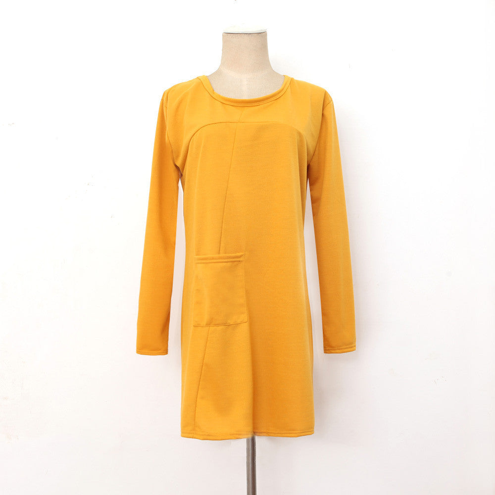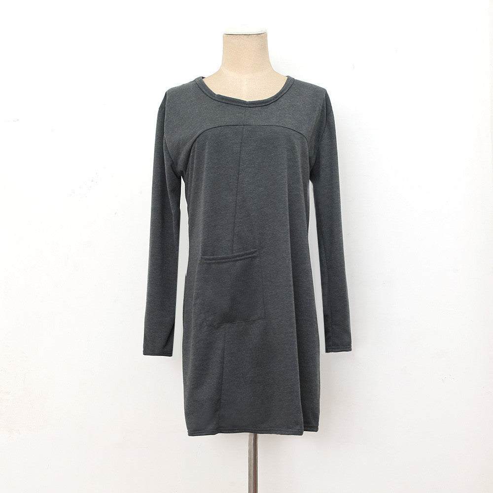 Women Dress Ethnic Style Solid Casual Long Sleeve Pocket Dress O Neck Loose Mini Dress Vestido de festa IMY66