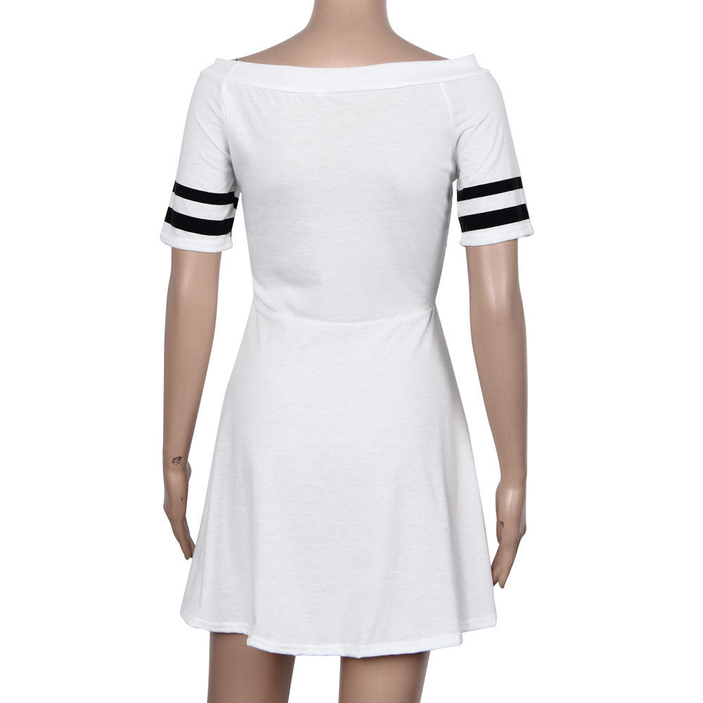 Women Dress Off Shoulder Bodycon s Short Sleeve Letter Print Party Mini Dress vestidos femininos IMY66