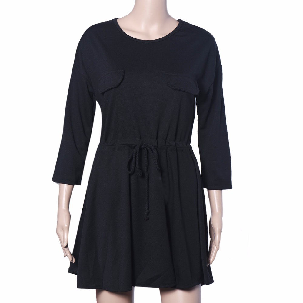 Women Dress robe vestido de festa Plus Size Solid Casual Pocket Loose Dress Party Bandage Bodycon Dress IMY66