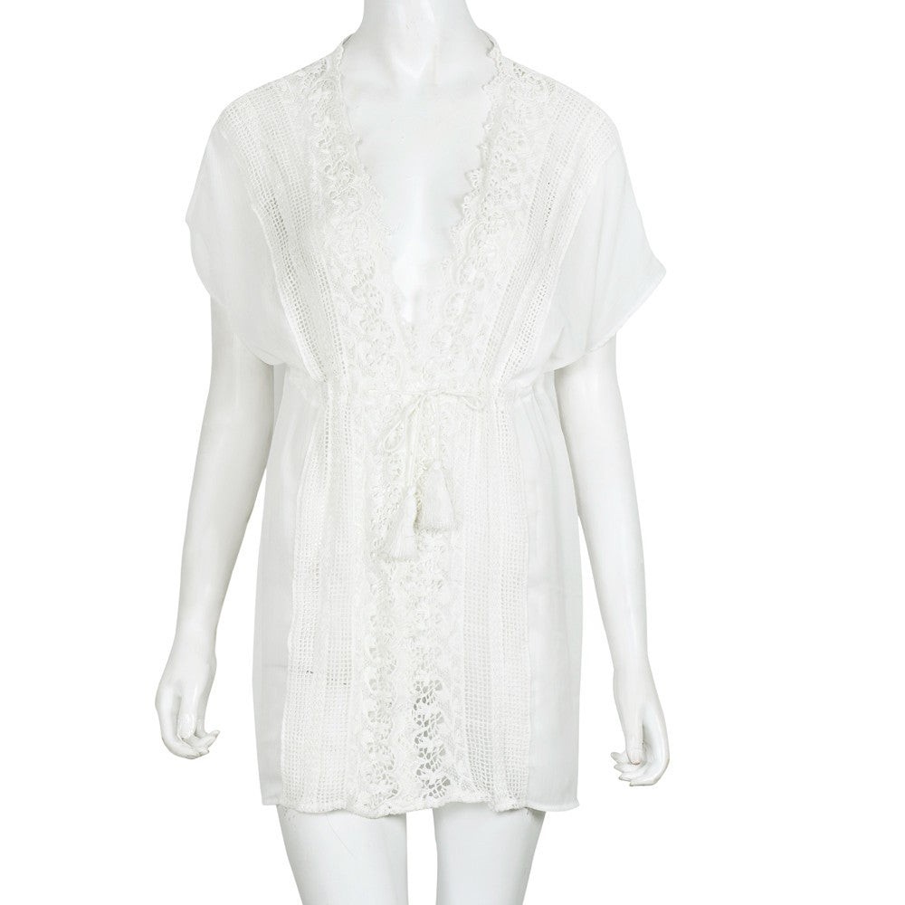 Women Dress Sexy Hollow Floral Lace Embroidered Crochet Beach Dresses Hippie Boho Dress Vestidos femininos IMY66
