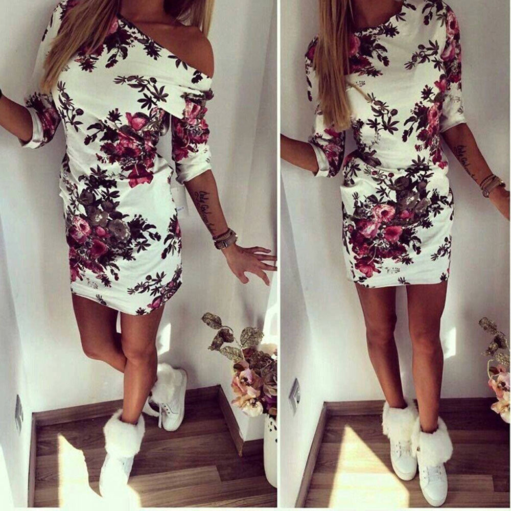 Women Dress Sexy Off Shoulder Printing Dress Tunic Bodycon Sheath Dresses Robe vestidos de festa IMY66