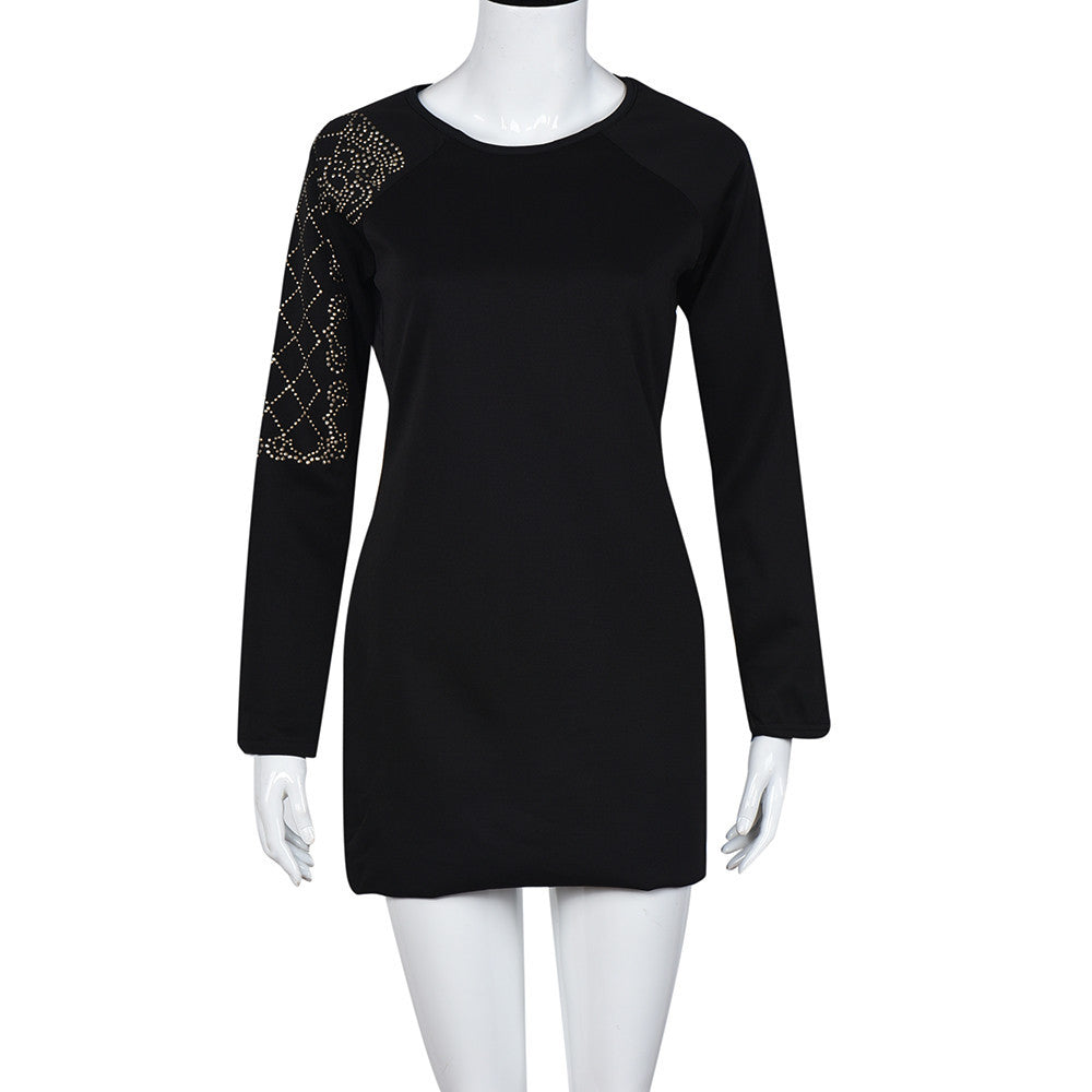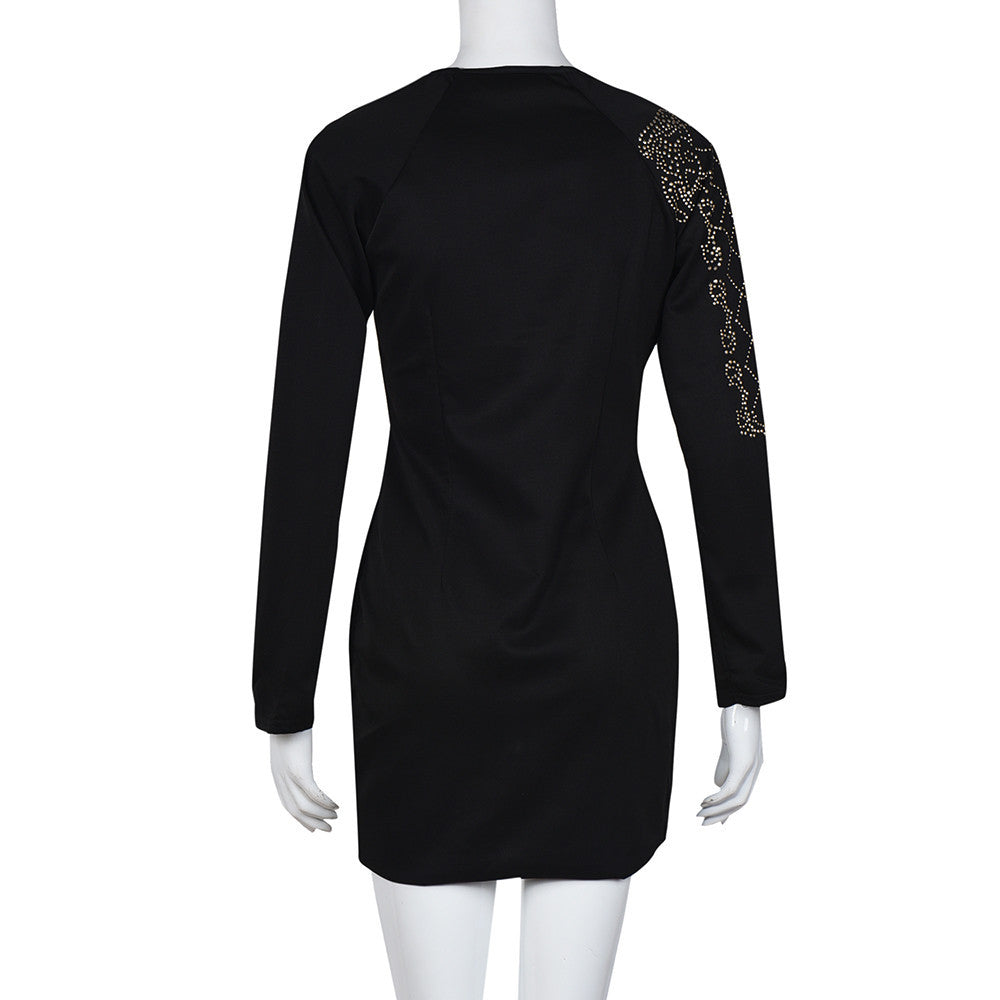 Women Dress Solid Sexy Bead Long Sleeve Evening Party Mini Club Sheath Dress Beach Dress vestidos femininos IMY66