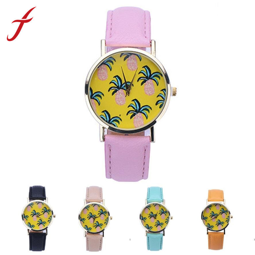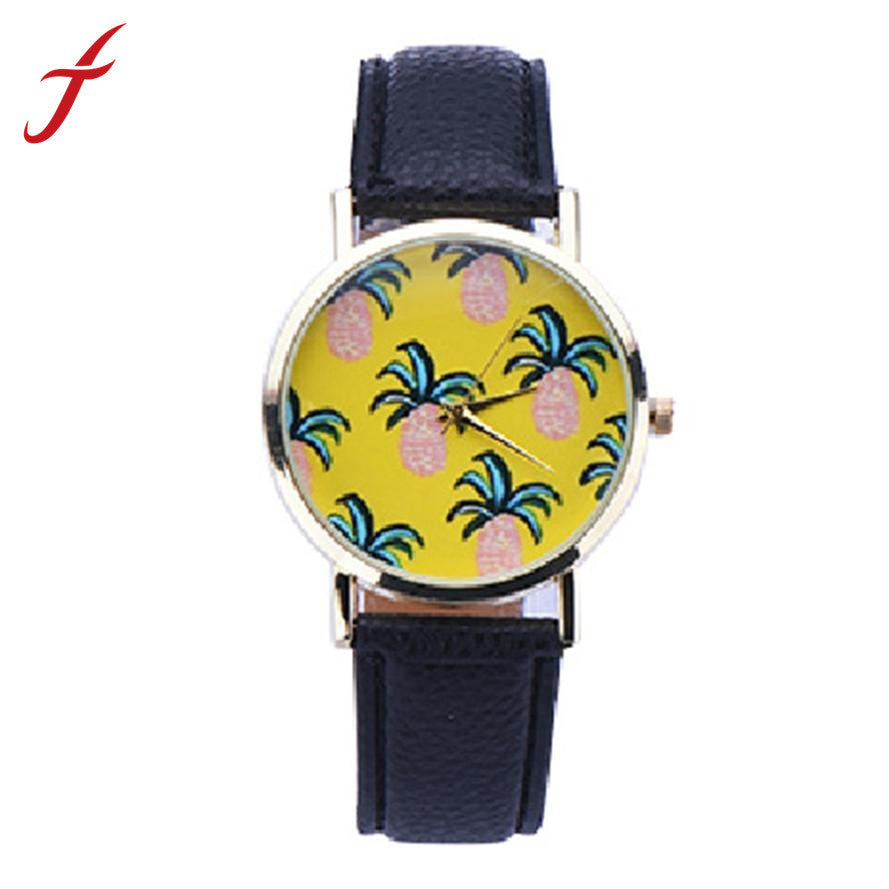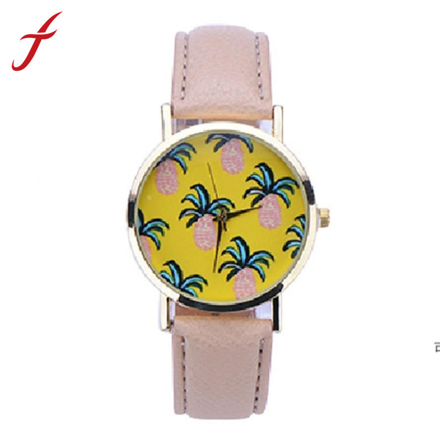 Women Dress Watches Pineapple Pattern Faux Leather Band Analog Quartz Wrist Watch reloj mujer IMY66