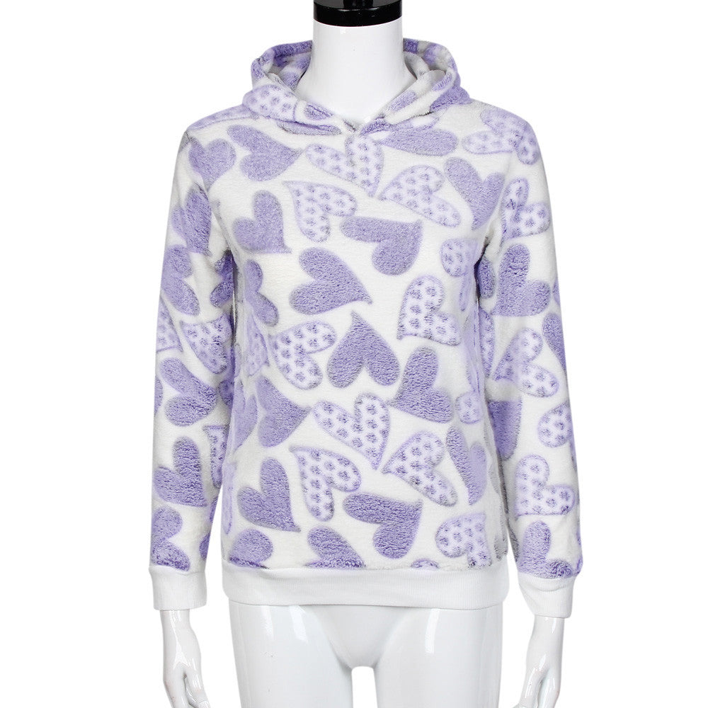 Women Hearts Print Hoodie Sweatshirt Jumper Sweater Hooded Pullover Long Sleeve Fleece camisetas y tops IMY66
