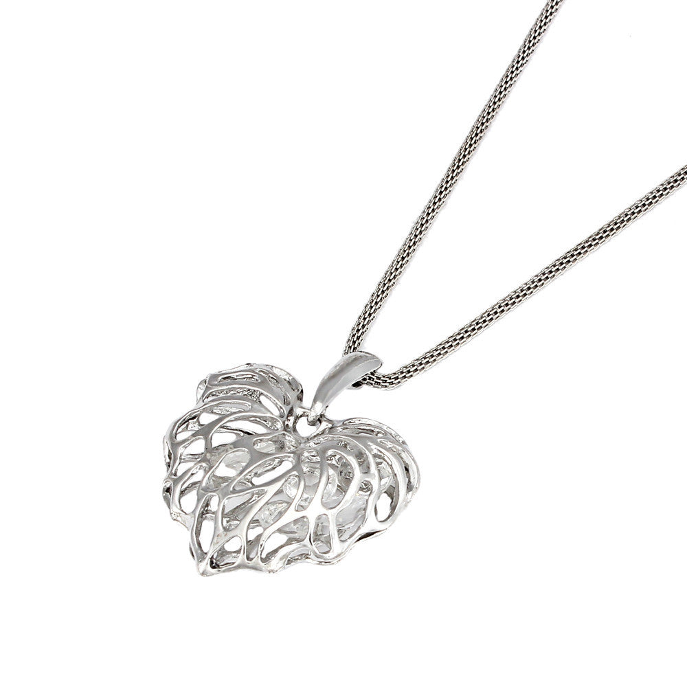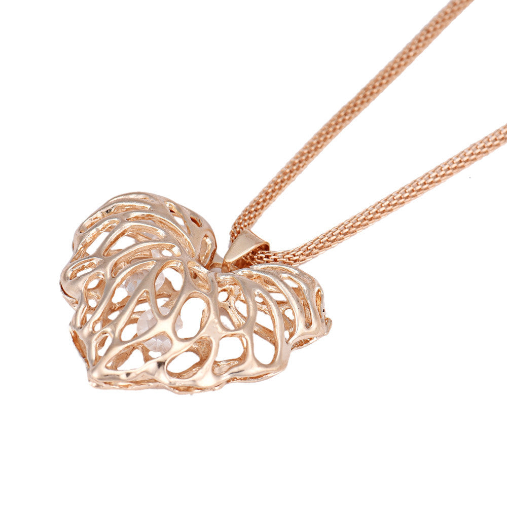 Women Hollow Heart Crystal Rhinestone Pendant Long Chain Necklace Wedding IMY66