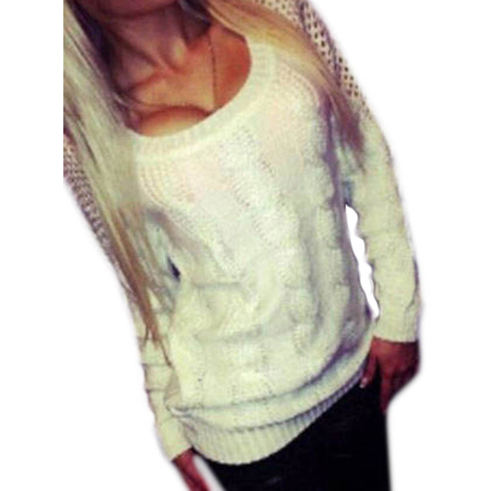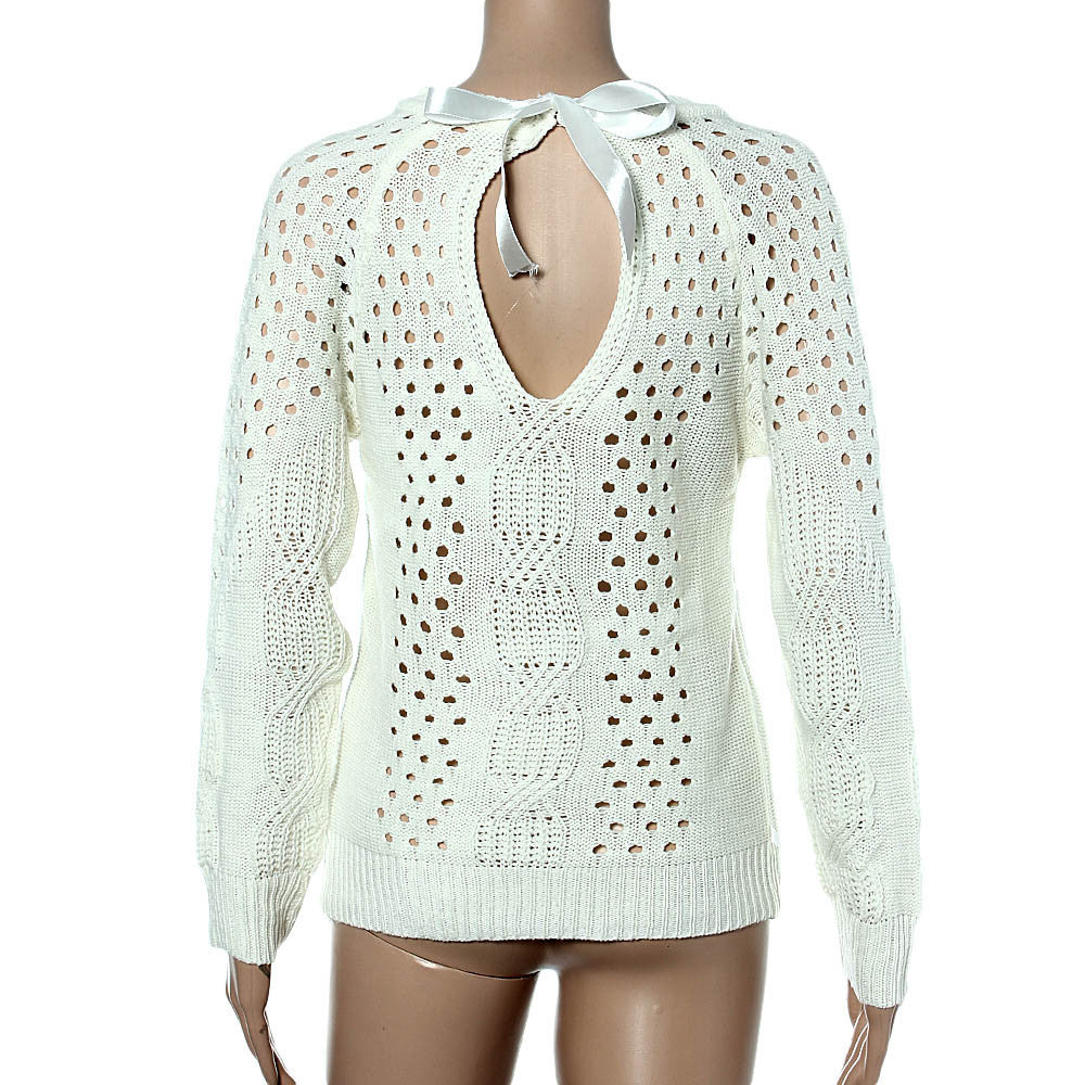 Women Hollow Out Long Sleeve Loose Knitted Sweater Backless Knitwear IMY66