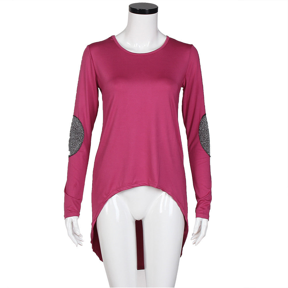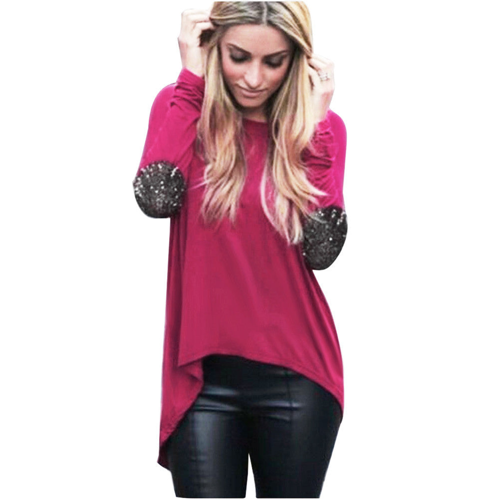 Women Irregular Long Sleeve Tops Patch Sleeve Round Neck Shirt Blouse Blusas femininas vetement femme IMY66