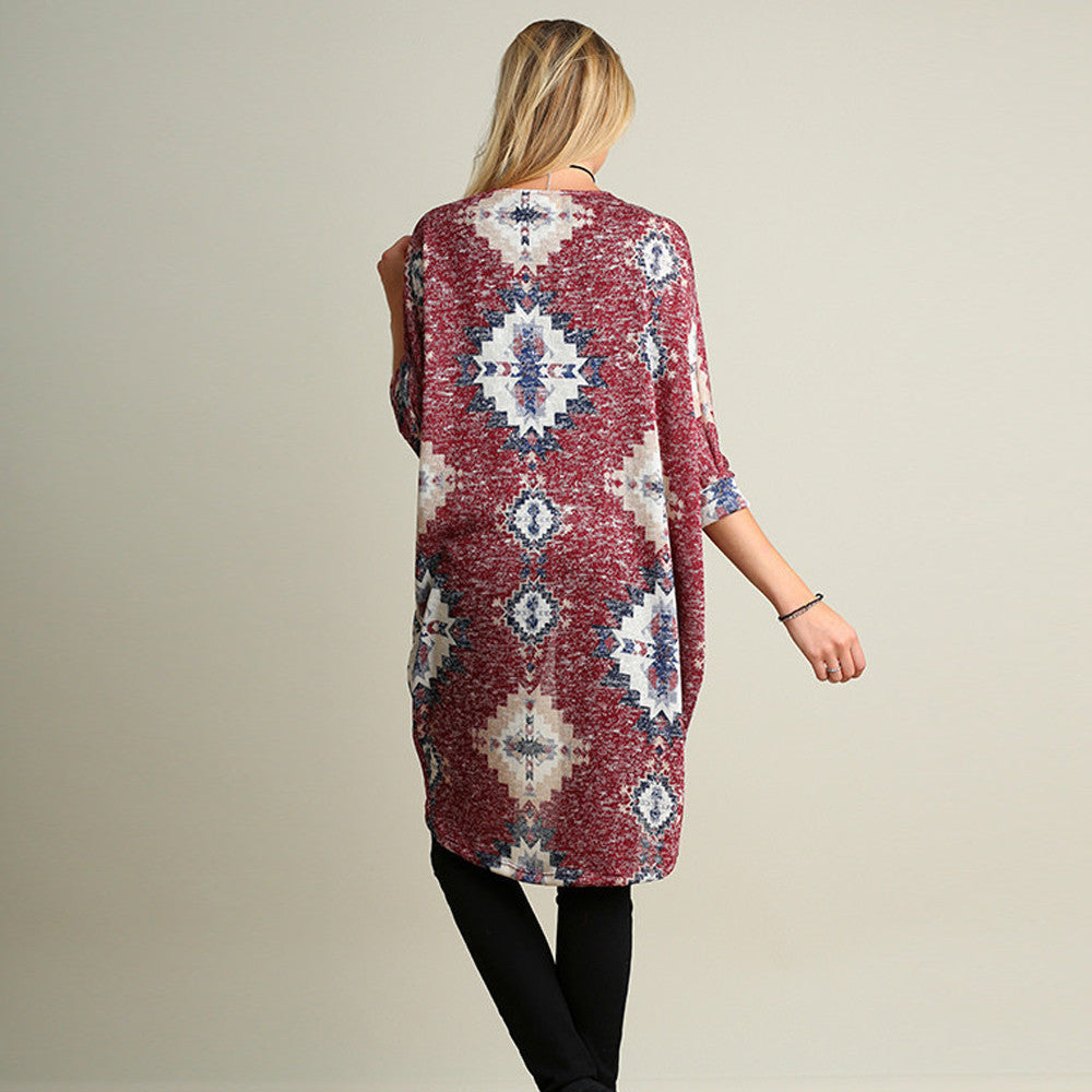 Women kimono cardigan Geometric Pattern Casual Printing Long Blouse Coat Outwear blusas femininas IMY66