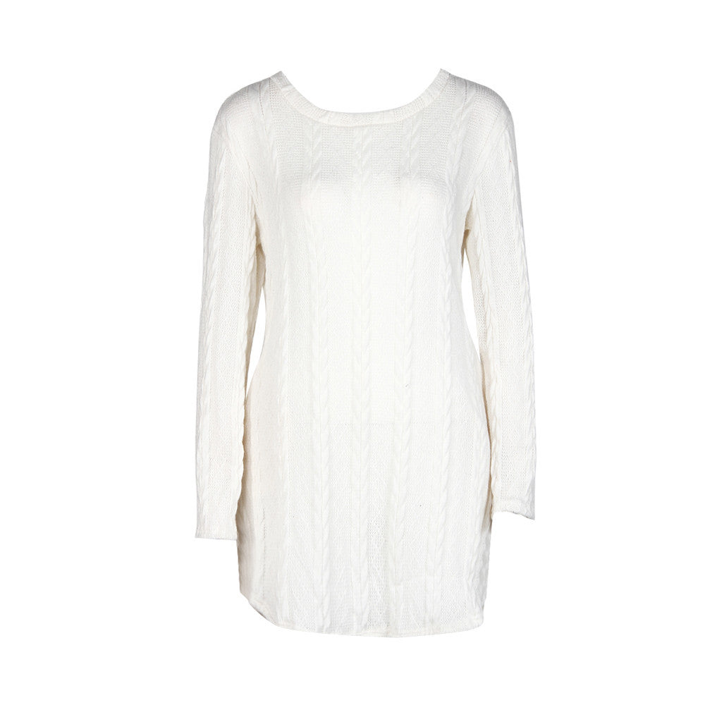 Women Knitted Sweater Dress Casual Long Sleeve Crewneck Jumper Slim Sweater Mini Dress vestidos de festa IMY66
