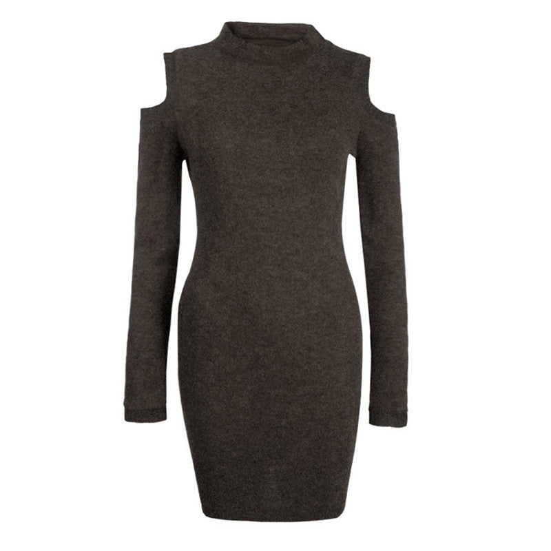 Women Knitted Sweater Dress Sexy Off Shoulder Long Sleeve Turtleneck Warm BodyCon Mini Dress vestidos femininos IMY66