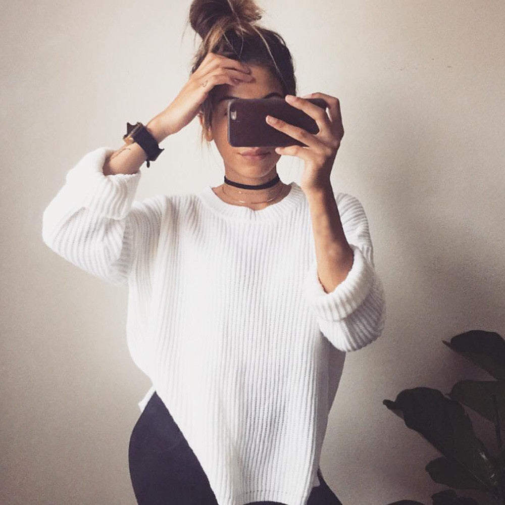 Women Knitted Sweater Long Sleeve Irregular Hem Tops Pullover Loose Jumper Knitwear Pullovers pull femme IMY66