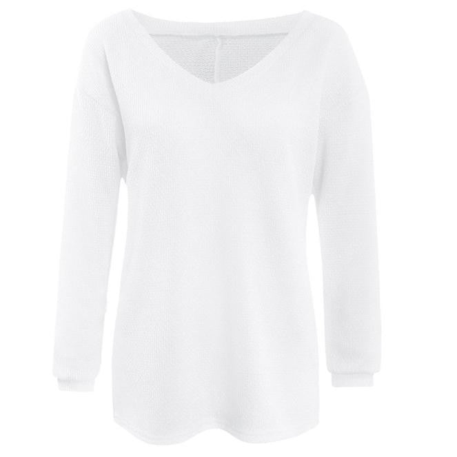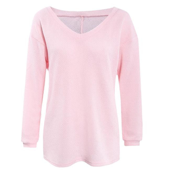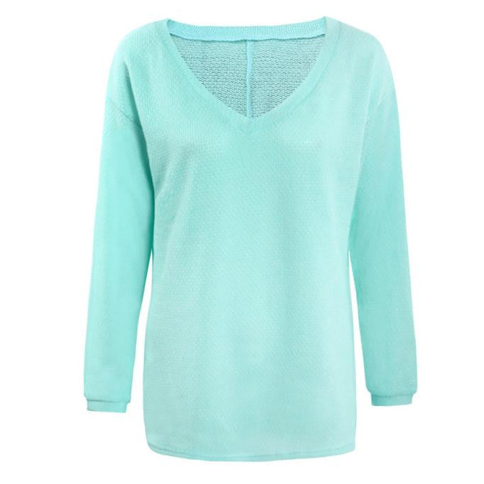 Women Knitted Tops Sexy Casual Loose Long-sleeve V-Neck Shirt Street Pullover Female Sweaters IMY66