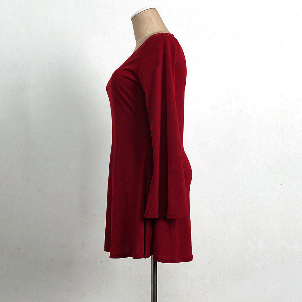 Women Ladies Casual Flare Long Sleeve Bodycon Party Sexy Slim Basic Mini Dress vestido de festa IMY66