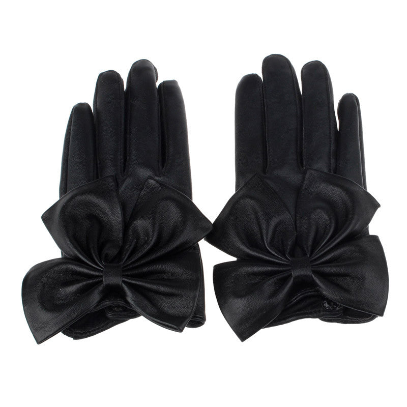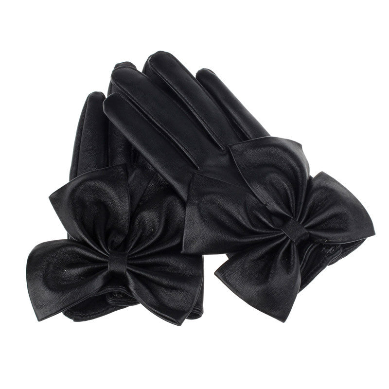 Women Leather Gloves Women Ladies Butterfly Bow Wrist Soft Leather Gloves Warm Gloves #014 IMY66