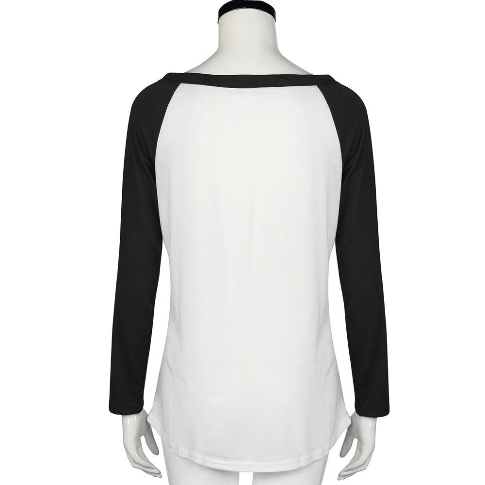 Women Letter Printing Splicing T-Shirts Casual Long Sleeve Round Neck Shirt Tops Tee Shirt femme camisetas y tops IMY66