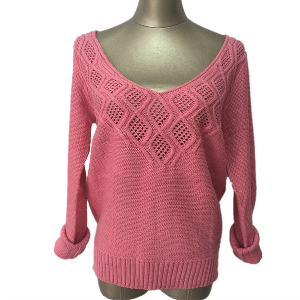 Women Long Sleeve Knitted Pullover Sweater Casual V Neck Loose Jumper Tops Knitwear Sweaters pull femme IMY66