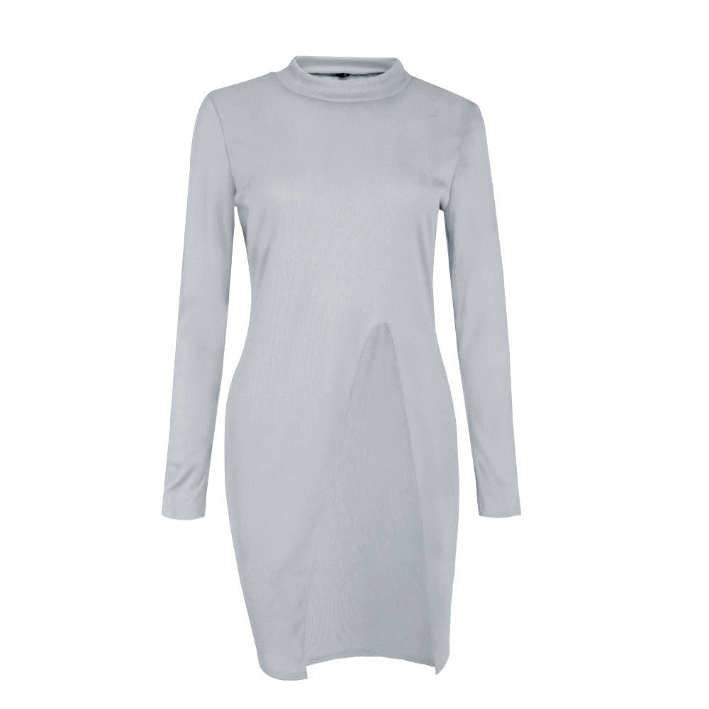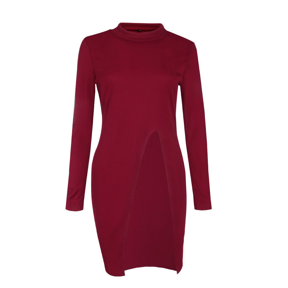 Women Long Sleeve Knitted Sweater Sexy Open Fork O Neck Sweater Jumper Tops Knitwear Dress Pullover pull femme IMY66