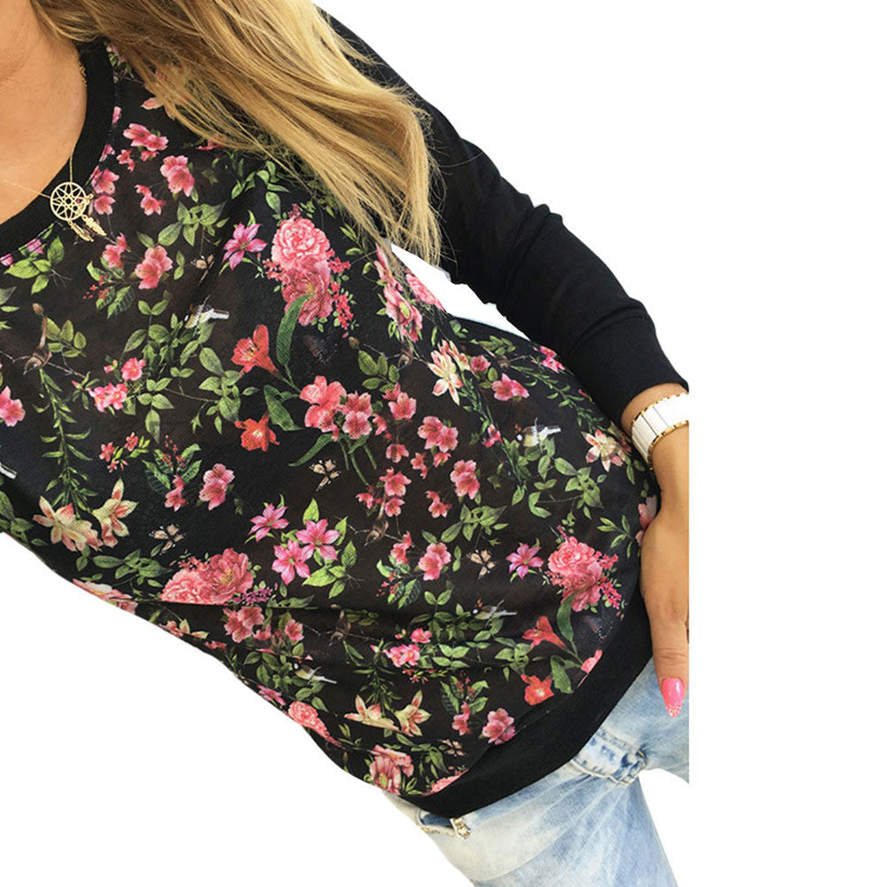 Women Long Sleeve Knitted T-Shirts Casual Long Sleeve Floral Print Tops Tee shirt femme camisetas y tops IMY66
