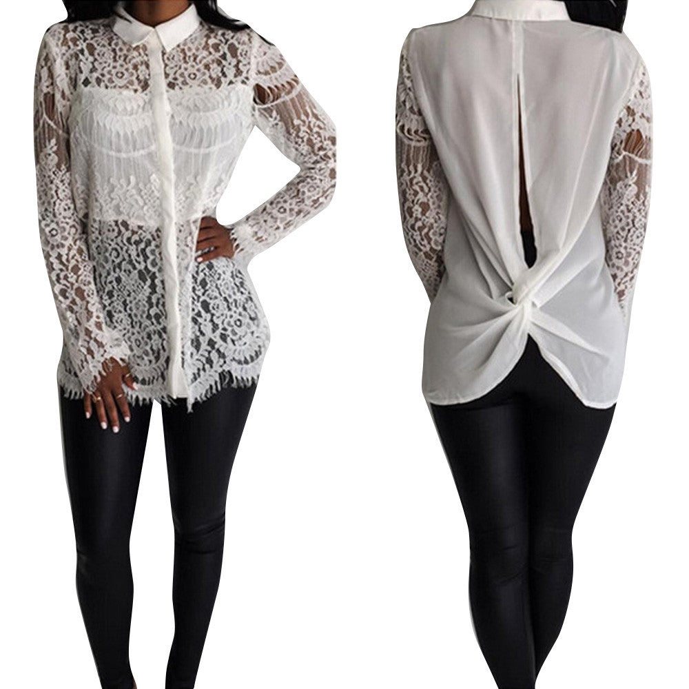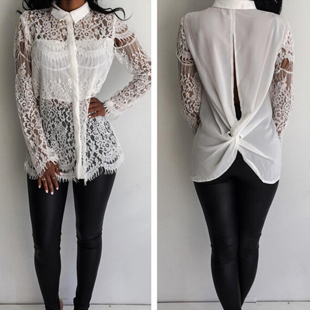 Women Long Sleeve Lace Shirts Tops Sexy Backless Hollow TransparenT-Shirt Blouses blusa feminina IMY66