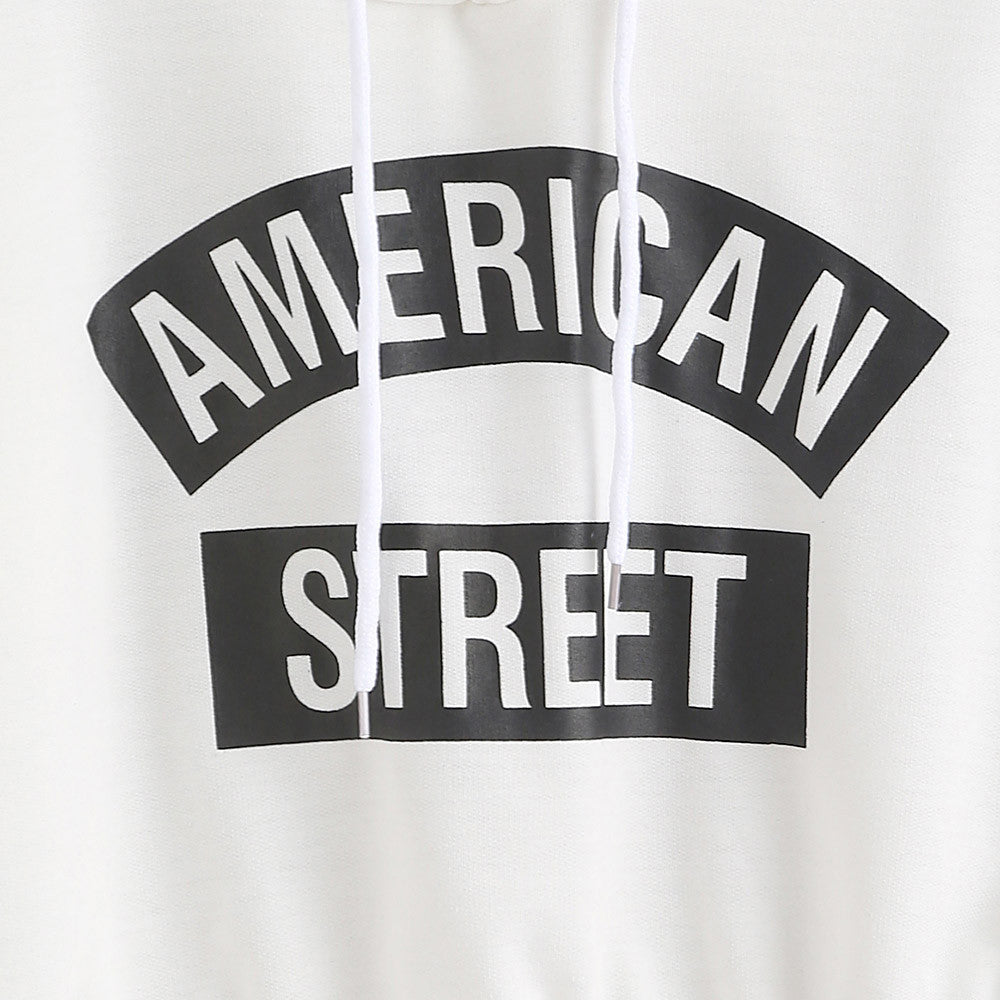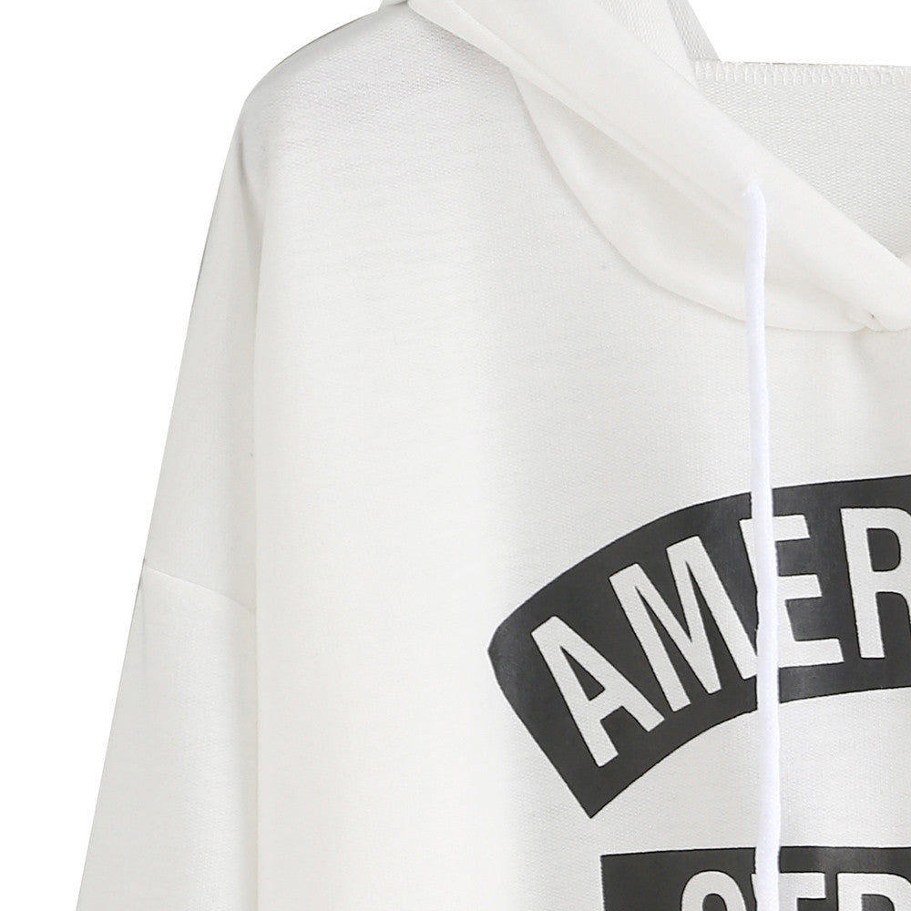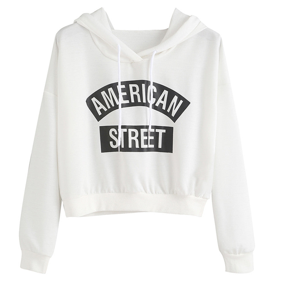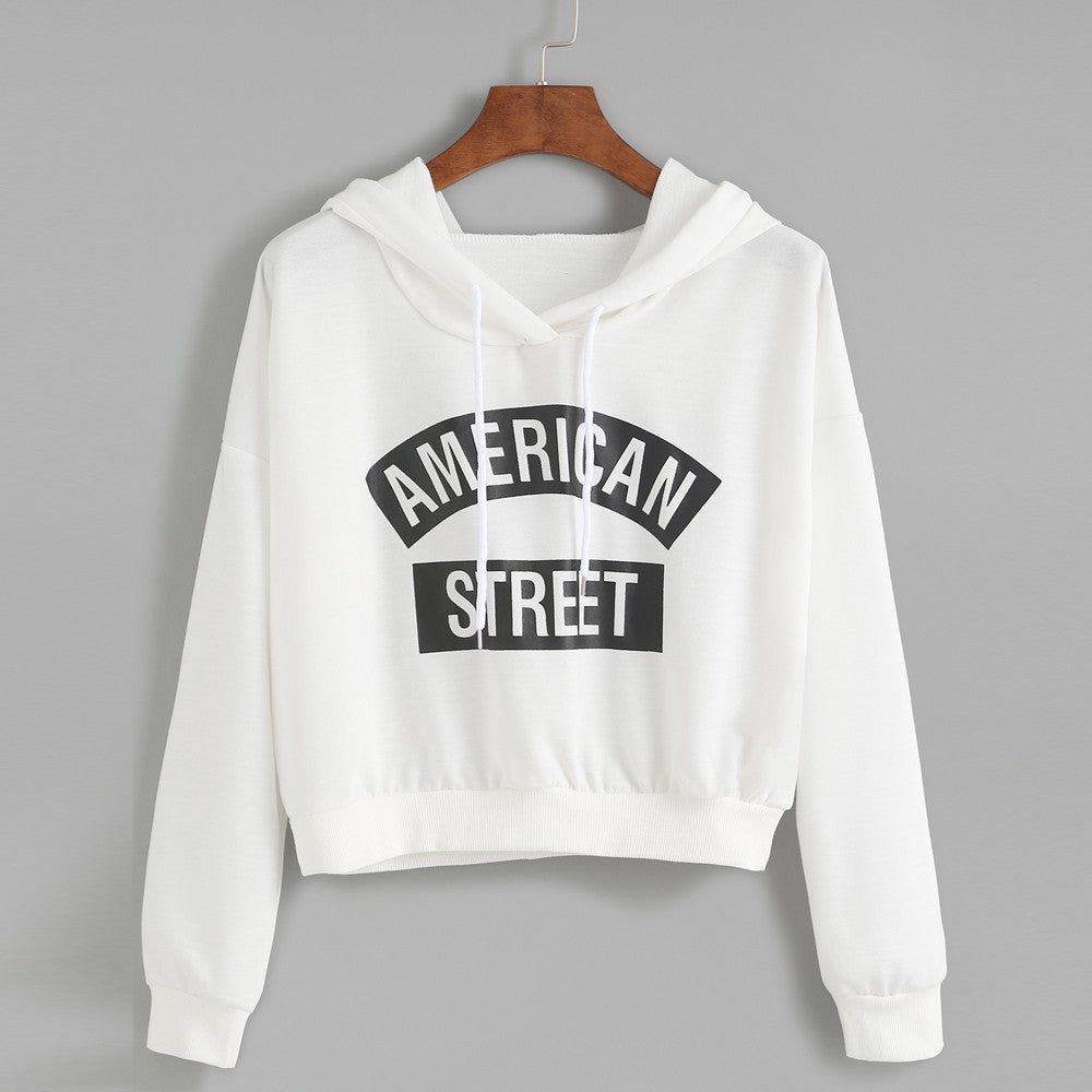 Women long Sleeve T-Shirts Crop Tops Casual Letter Print Hooded Sweatshirt Pullovers Tee shirt femme camisetas y tops IMY66