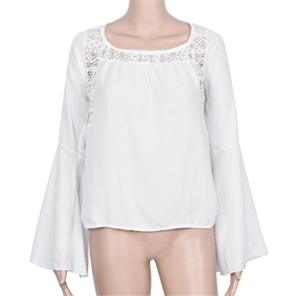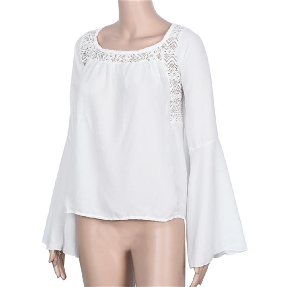 Women Loose Chiffon Blouse Ladies Sexy Hollow Backless Lace Tops shirt Casual Shirt blusa feminina IMY66